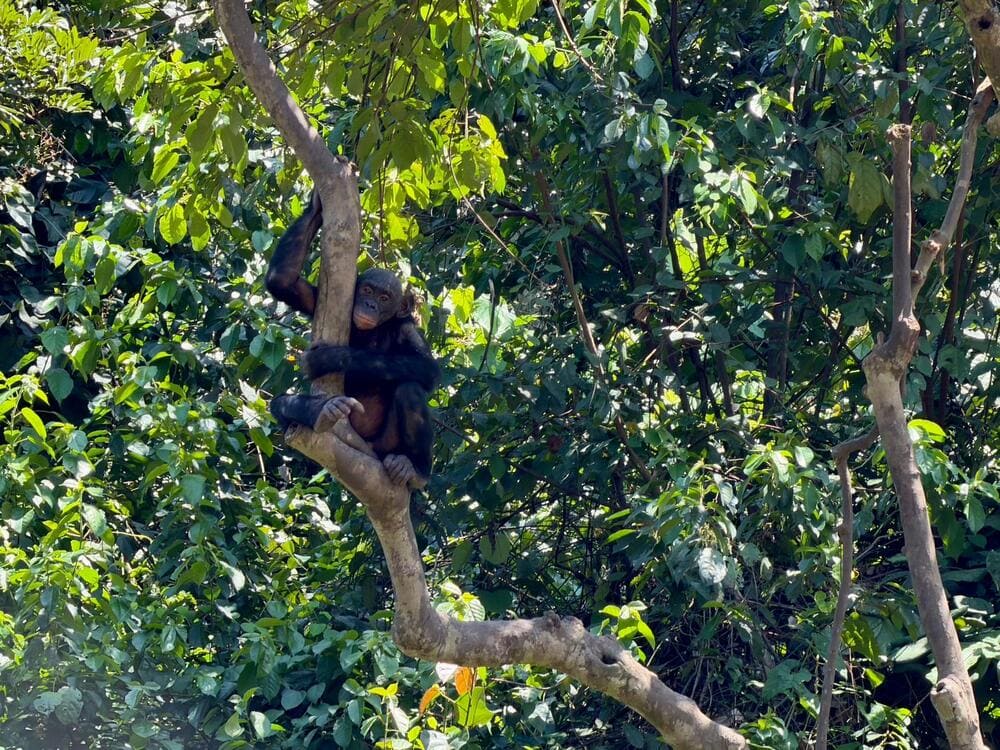 Visitors, such as during our DRC, Congo and Cabinda tour, experience the sanctuary through guided walks along forest paths and observation platforms overlooking natural enclosures. The setting feels immersive while remaining easily accessible from Kinshasa.