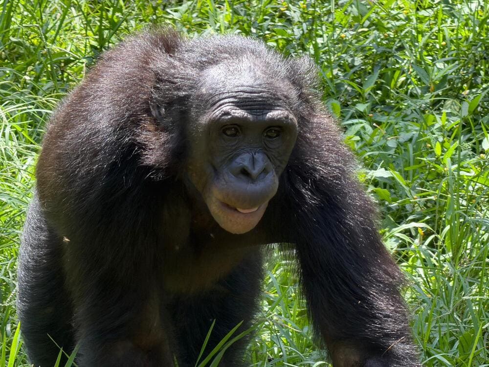Bonobos (Pan paniscus) are one of the two species of chimpanzee and share approximately 98.7 percent of their DNA with humans. They are found exclusively in the forests south of the Congo River, making them endemic to the Democratic Republic of the Congo and one of the country’s most significant natural treasures.